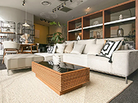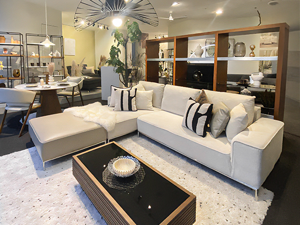 差し色のブラックがナチュラル過ぎない大人な雰囲気になっております。こちらのソファに採用しているホワイトカラーもとても人気の生地で、オールシーズン使いやすいカラーですね。
