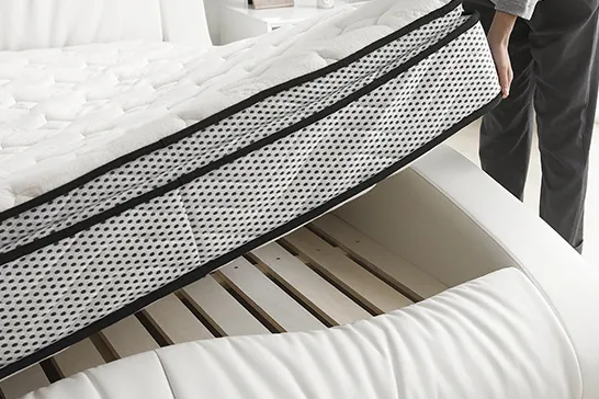 マットレスをフレームの内部に落とし込む構造。これによりマットレスのずれを防ぎ安定感のある寝心地をもたらします。