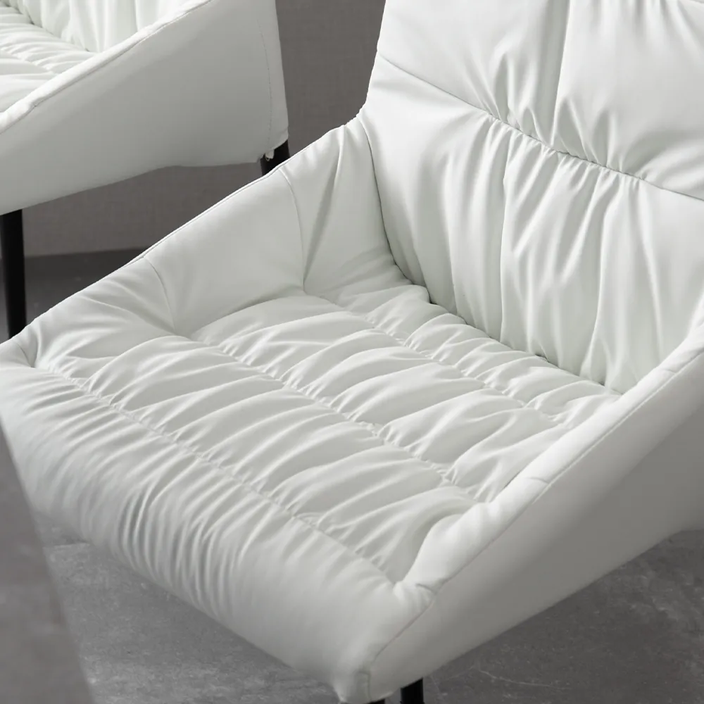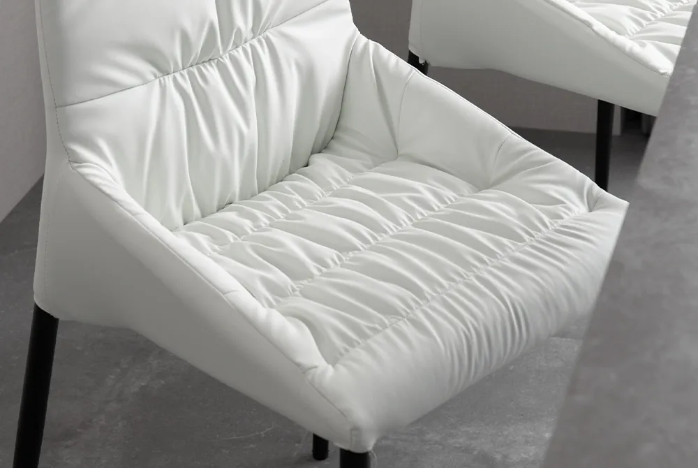 ギャザーをあしらったPUレザーと座面のウレタンフォームがソフトに支える柔らかな座り心地。PUレザーのしなやかな肌ざわりが魅力を発揮します。