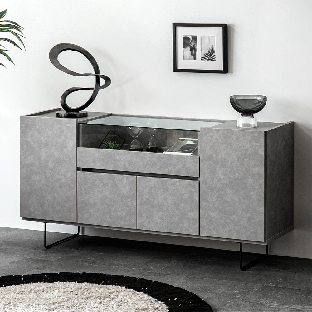 重厚感と静けさをもたらす上品な佇まいながら、大容量の収納スペースで空間を美しく保つチェスト。モルタル調模様とガラス、スチールの異素材が引き立て合い、リビングに美しく溶け込みます。使い心地に寄り添い、ライフシーンを豊かに彩るデザインです。