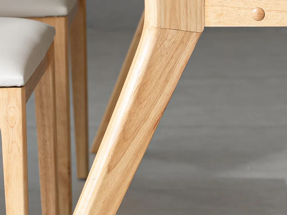 テーブル脚部やチェアのフレーム表面はオープン塗装でコーティング。汚れや傷を防ぎながら、木材の持つ風合いや質感を活かすように仕上げました。