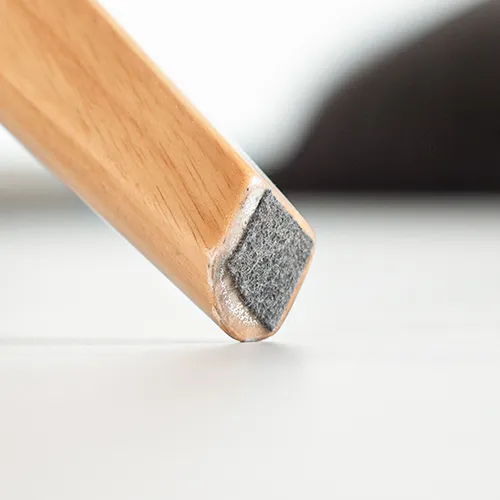 テーブルとチェアの脚裏には、脚部が直接フロアにつかないよう保護パーツを施しています。フロアのダメージと脚部の劣化を軽減します。