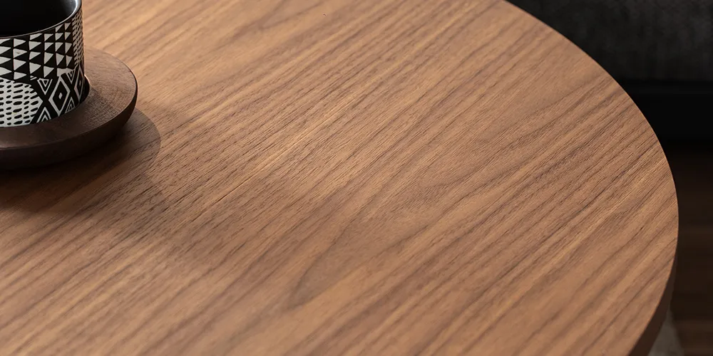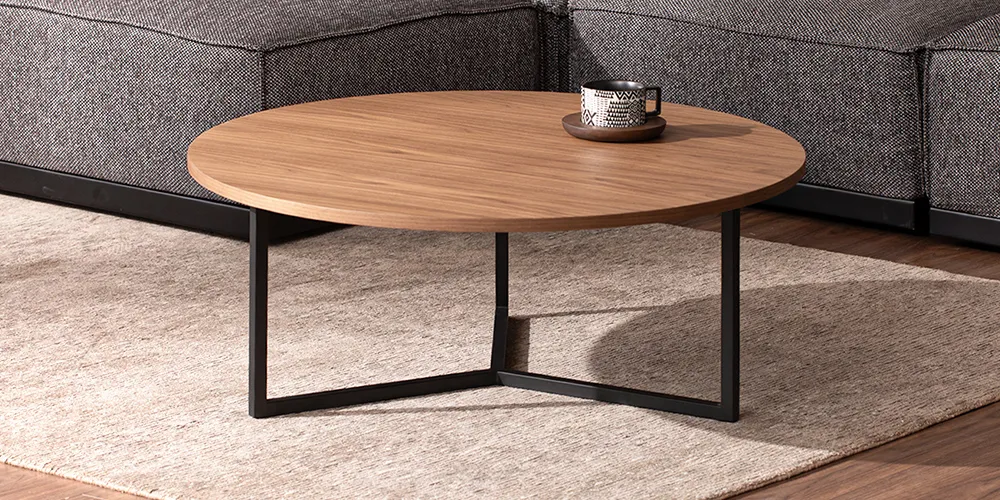 綺麗な真円を描くウッド天板とエッジの効いたフラットバータイプのスチールレッグ。 華奢な3本足のデザインは、足元の空間が確保しやすく、機能性も兼ねた設計です。お部屋をエフォートレスな雰囲気に仕上げ、ゆとりある空間を生み出します。