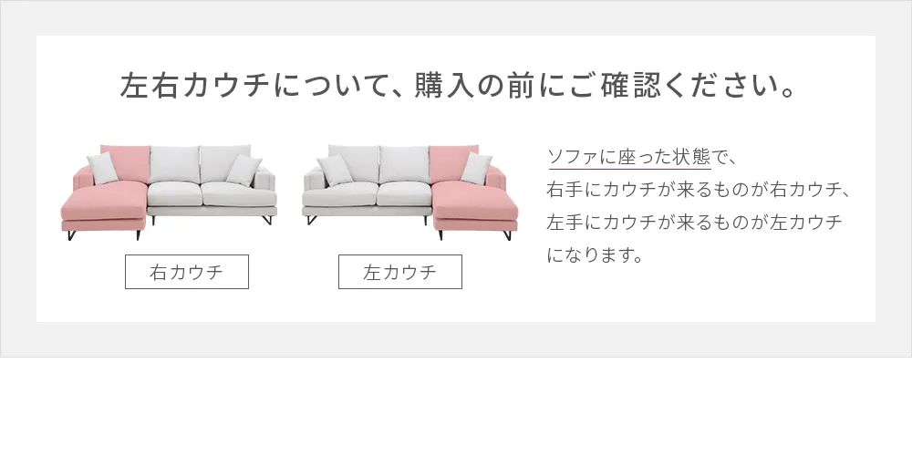 座られた時、右手にカウチが来るものが右カウチ、左手にカウチが来るものが左カウチです。