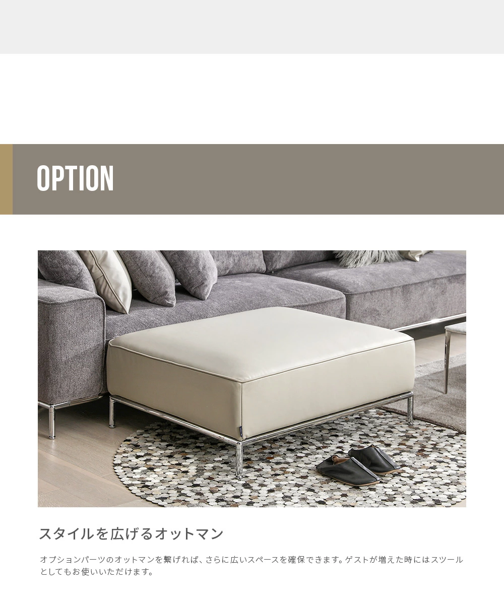 新品の美しさを楽しめる替えカバーに、あらゆるレイアウトを可能にするオットマン。オプションを取り揃えました。