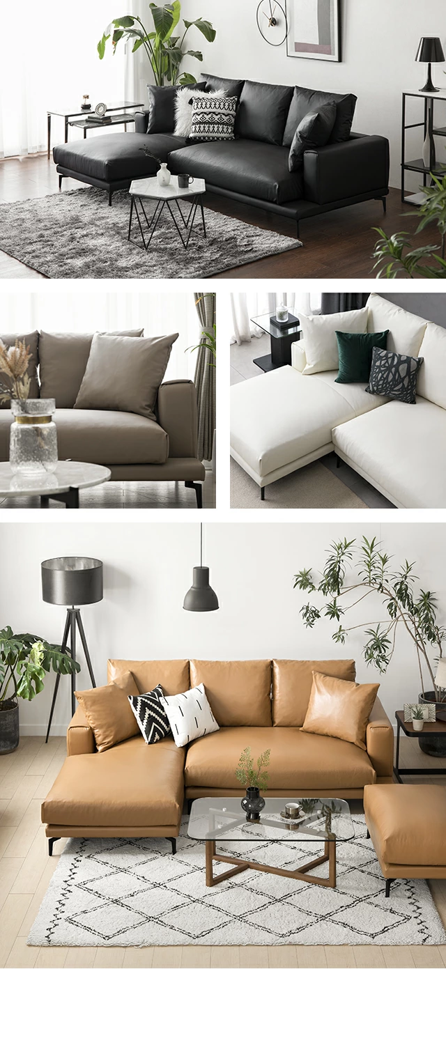 ボリューム豊かなクッションが包み込む優雅なくつろぎスペース。上品な光沢が美しいレザーが格調高い空間を演出します。