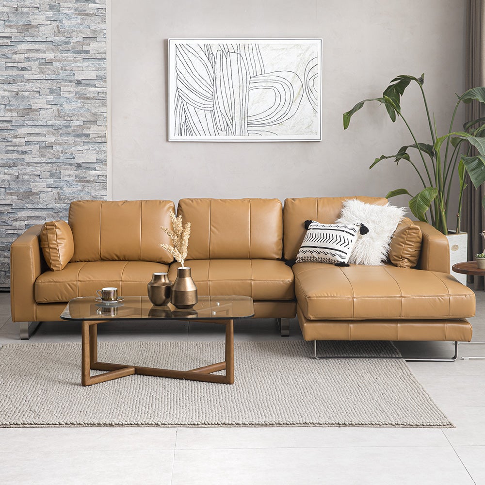 本革のようにしなやかな風合いで肌なじみのよいしっとりとした質感のオールレザーデザイン。上品で美しい光沢が高級感のある空間を演出します。無駄な装飾のない、居住空間との調和性の高いソファです。