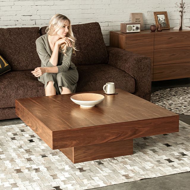 縦横に広々と使える正方形トップ。くつろぎのシーンはもちろん、ワークスペースなど様々な生活シーンに対応します。絶妙なバランスで天板を支えるソリッドなレッグは、安定感をもたらすとともに、テーブルトップを際立たせます。