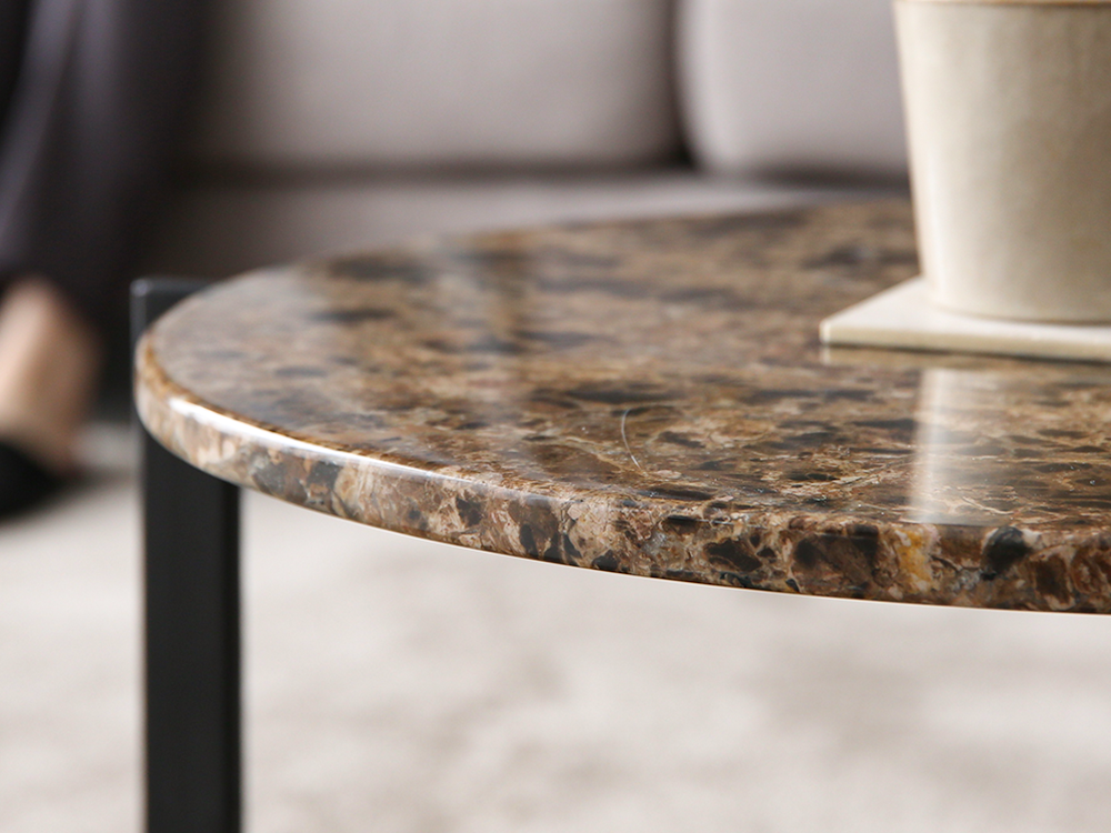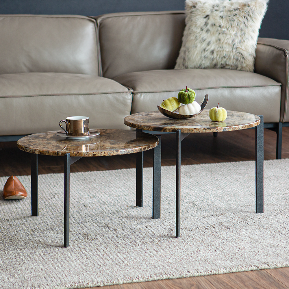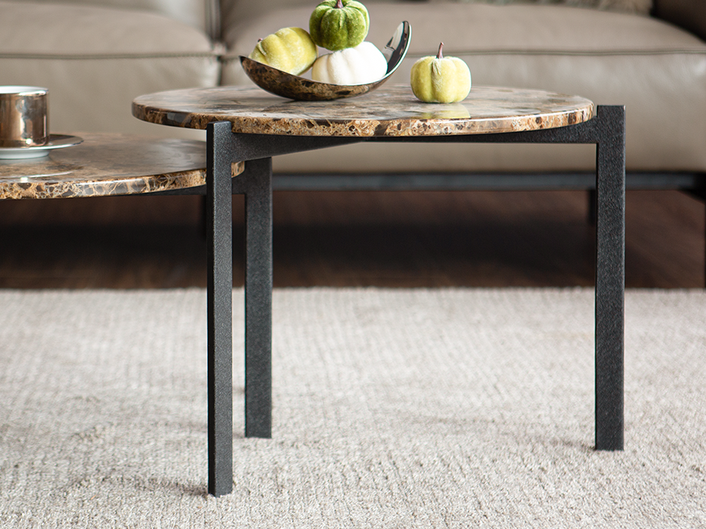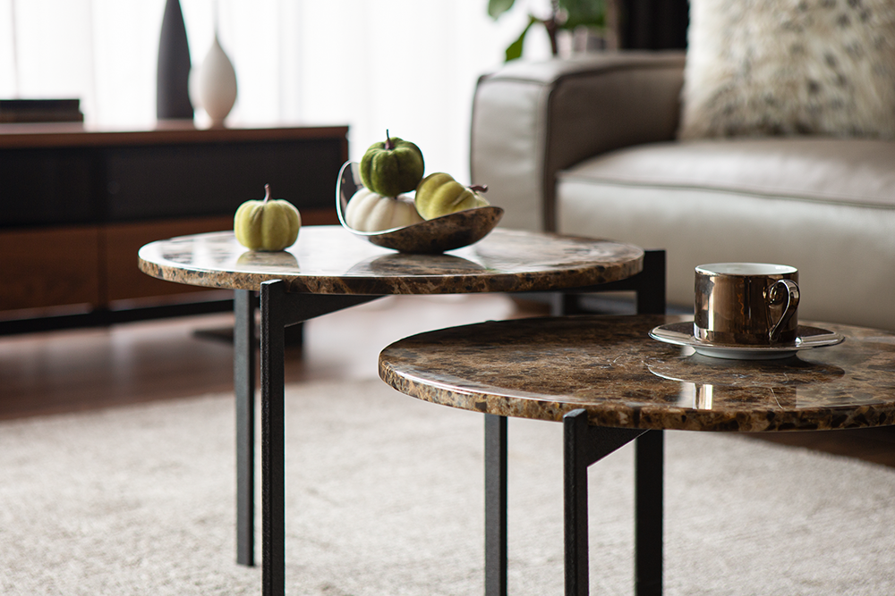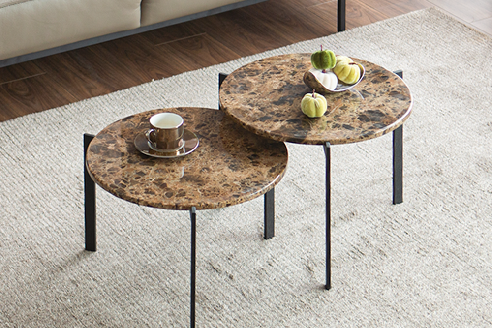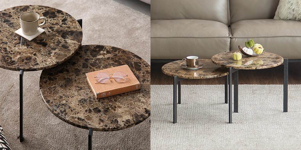 気品あふれる天然大理石が美しいネストテーブル。組み替えできるデザインで実用性も兼ね備えた一台に仕上げました。