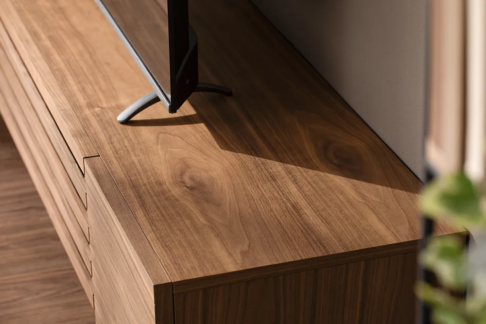 一般的な突板より厚手の0.5mm厚を使用。表面の擦れや破損に強く、木目本来の美しさも感じられます。