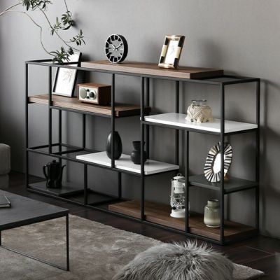 鉄柱と木材の組み合わせが気に入りました。板を置く位置を好きに変えれる点もポイントたかいです。 シンプルでスタイリッシュですが、しっかり収納してくれます。 -
