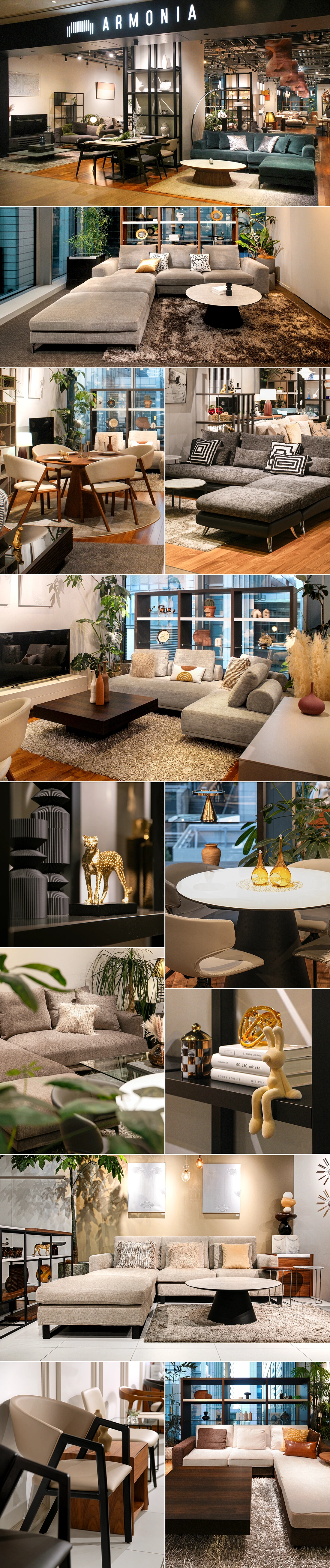 ボリューム豊かなクッションと、エッジの効いた脚部との組み合わせが目を惹く一台。