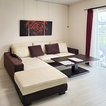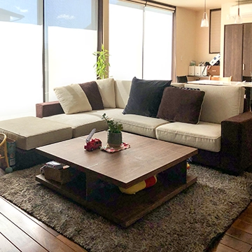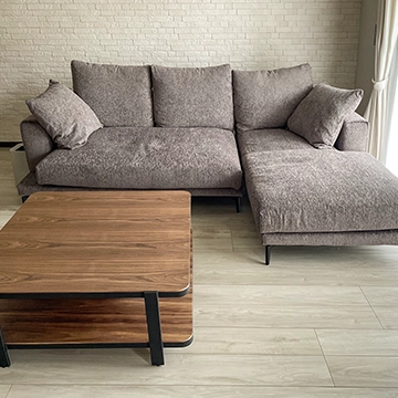 カウチソファーとセンターテーブルとラグマットとダイニングチェアを購入しました。カウチソファーは硬めが希望で、丁度いい座り心地のソファーが見つかりました。足も伸ばせてとてもリラックスできています!頭の部分の角度も変えられ、個人に合わせて調整できるので助かってます。センターテーブルも脚の形がとてもおしゃれです。ラグは、円形にしてポイントになって良かったと思ってます。直接座っても痛くなく、毛足も長すぎず、短すぎず色も気にいっています。ダイニングチェアは、座面のクッションがとても柔らかく、長時間座っていても疲れません。ホテルライクなインテリアにしたかったので、アルモニアの商品を取り入れて、理想に近づけました。とてもおしゃれで大好きなブランドです。また、価格もお手頃でコストパフォーマンスも良いと感じています。広島店のお店に行くと飾られている雑貨もとても素敵でついつい買ってしまいます。また、これからも利用したいです。