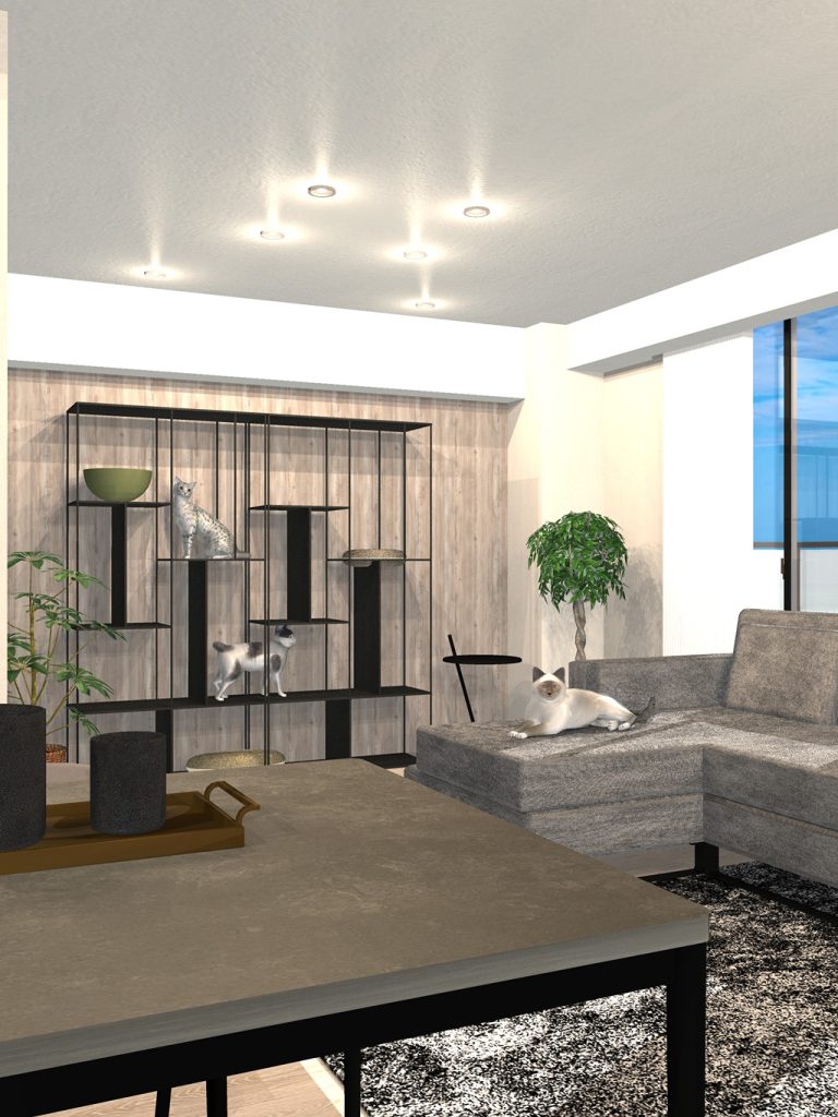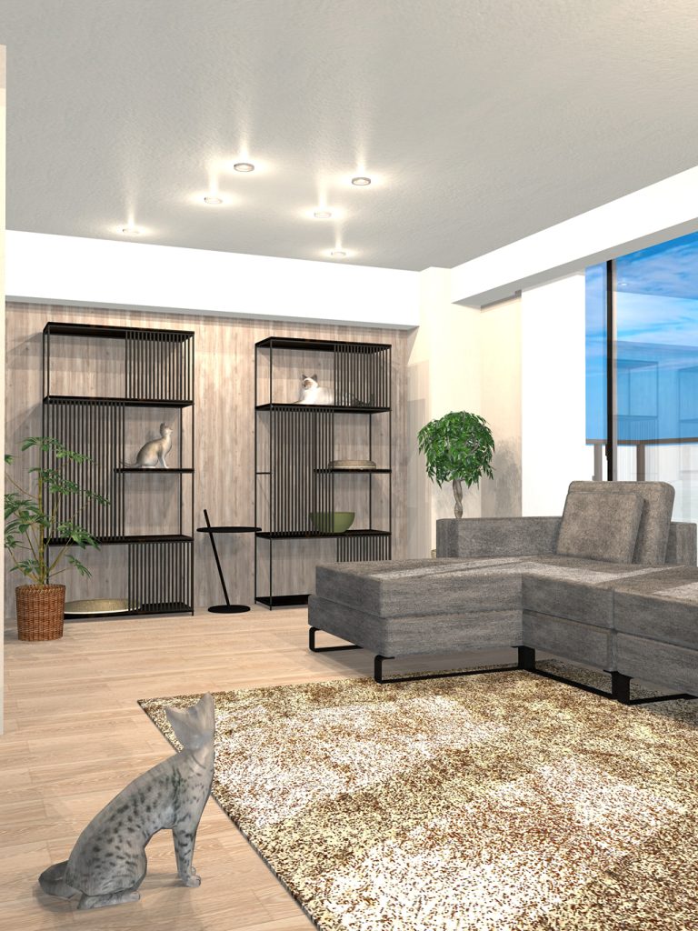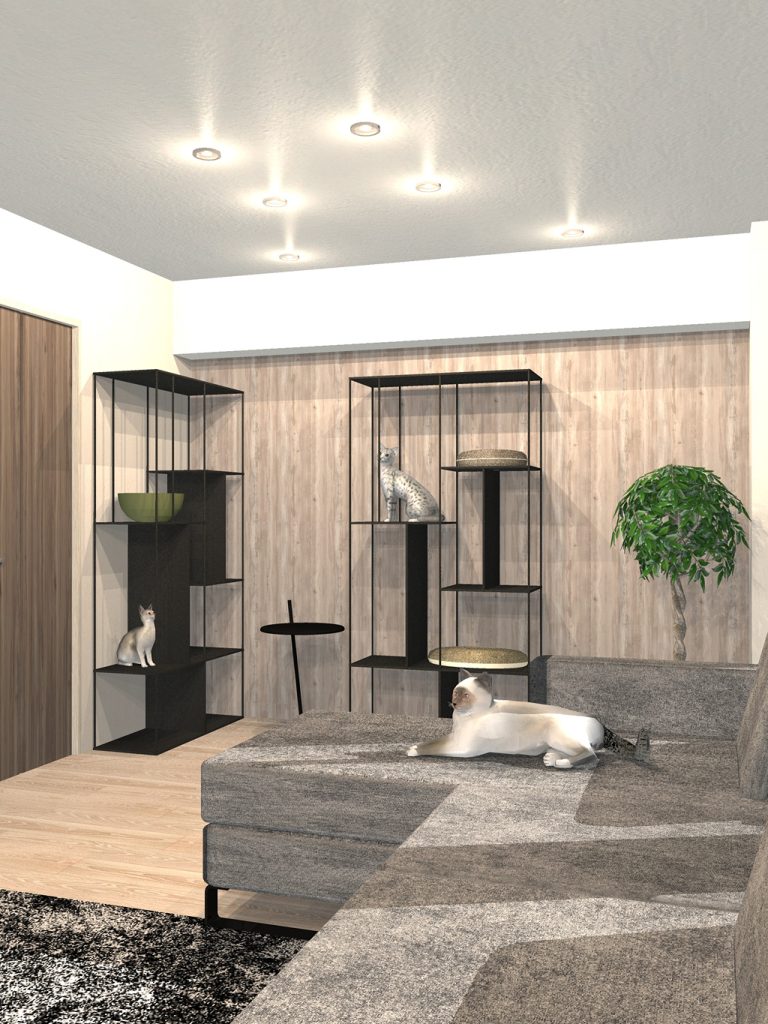 そこでインテリアを楽しみつつ、猫が喜ぶ・特性を考慮したインテリアをこのシェルフを使い考えました。