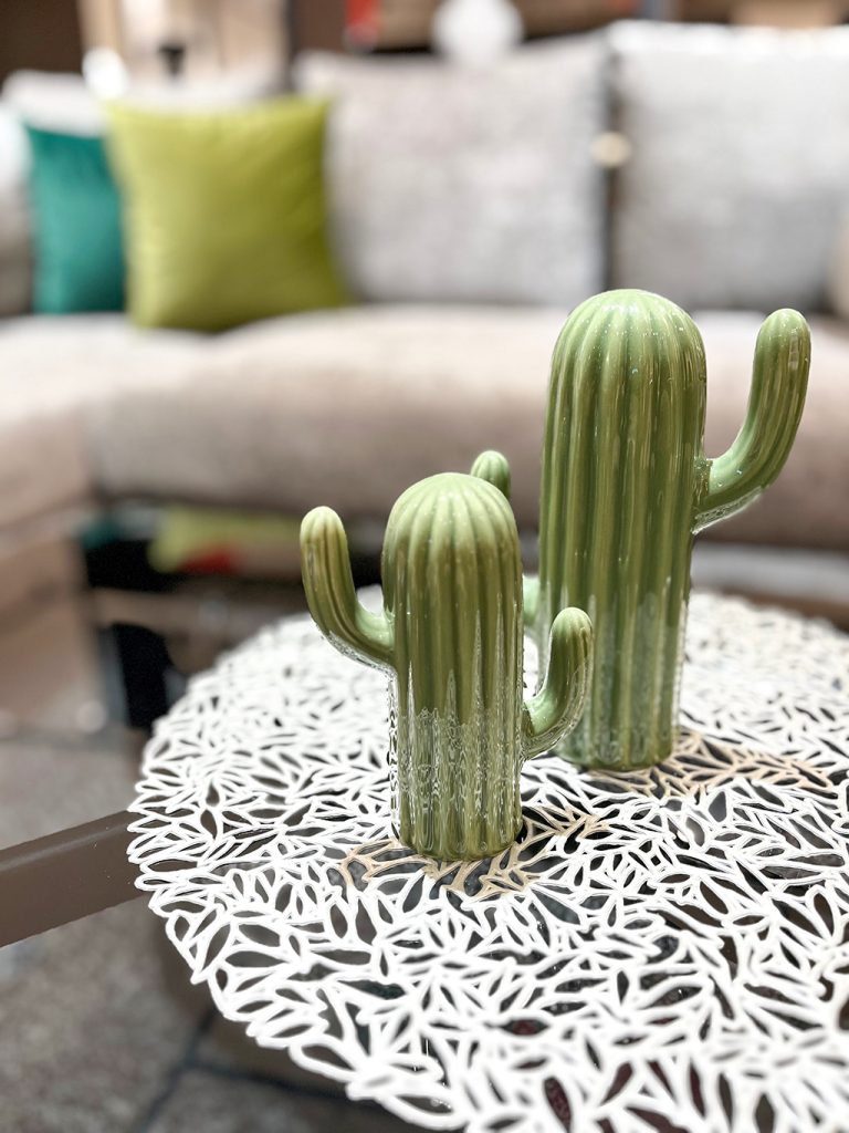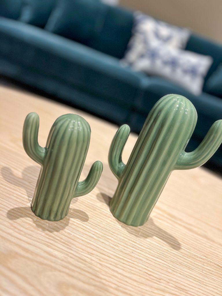 こんにちは! ARMONIA名古屋店の水野です。 今回は、個人的にお気に入りの小物をご紹介いたします。 サボテンのオブジェで大小の2サイズあり、2個隣り合わせで高さの差を出してあげると存在感アップ! ナチュラル系のコーディネートにはもちろん、モノトーン系のコーディネートにアクセントとして置くのもおススメです! 照明を調整すると、、、シルエットで手を繋いでいるようにも見える癒し系小物のご紹介でした!