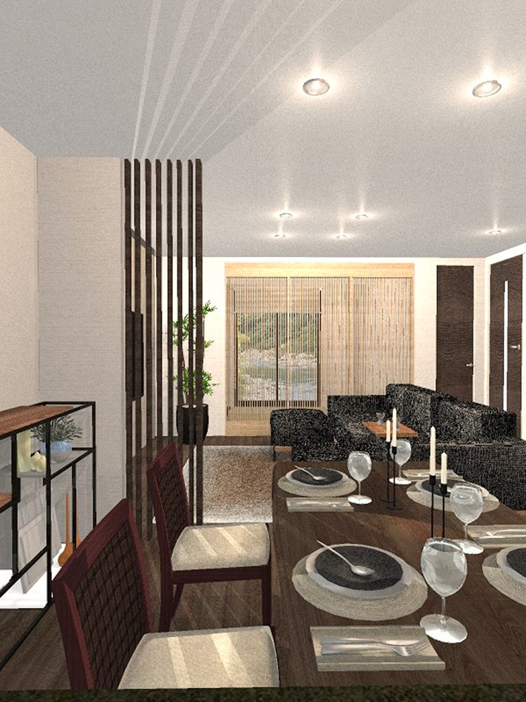 お持ちのダイニングセット、格子戸と和モダンテイストにベストマッチ!
