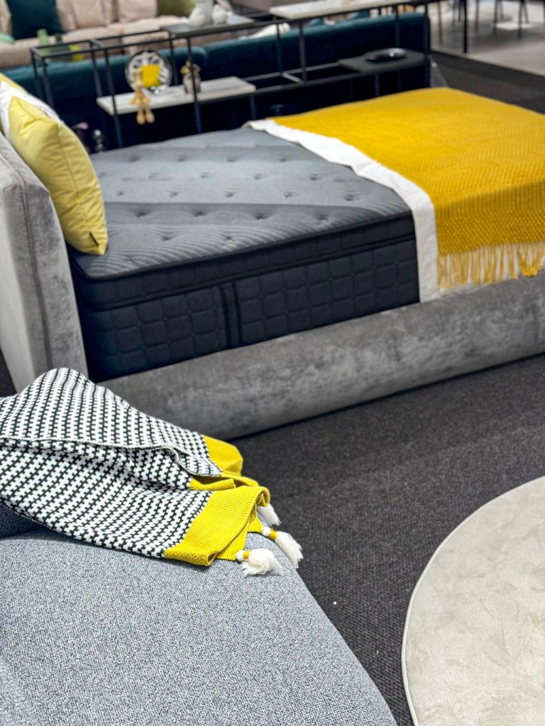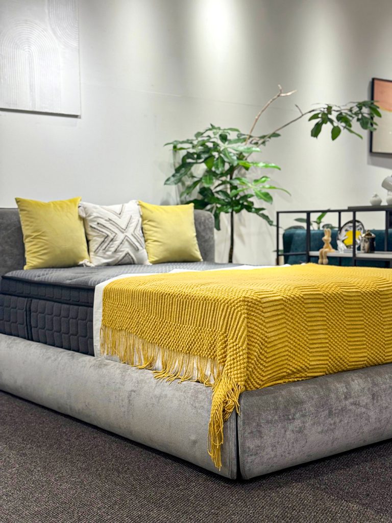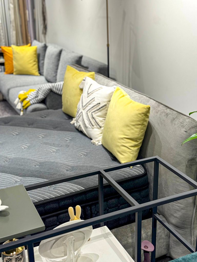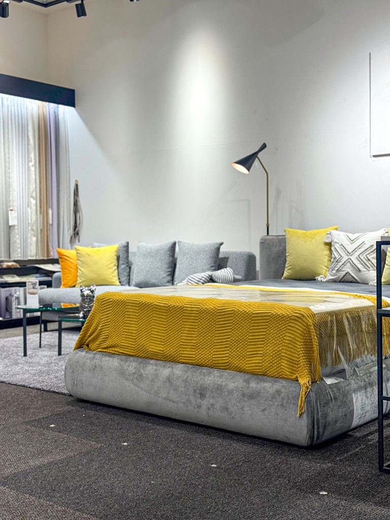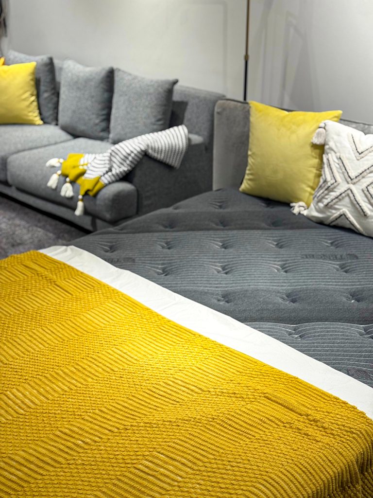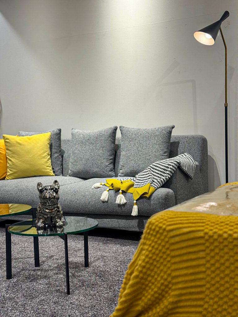 今回ベースに使っている家具は、まさにイエローを引き立たせるステージのような存在です。