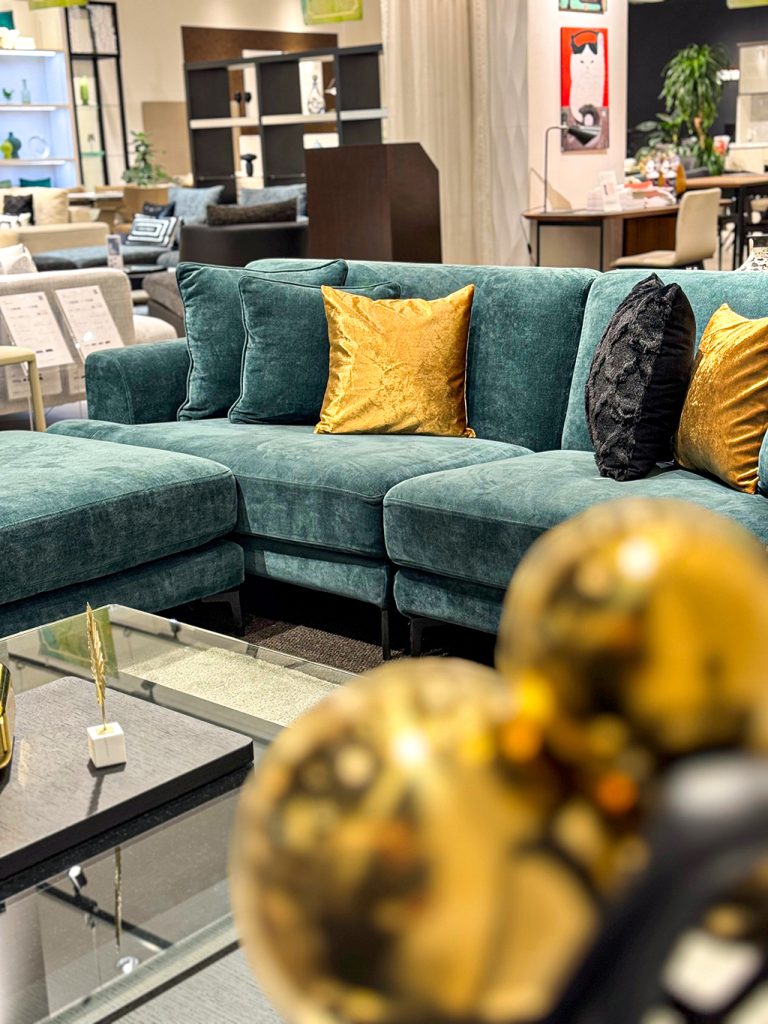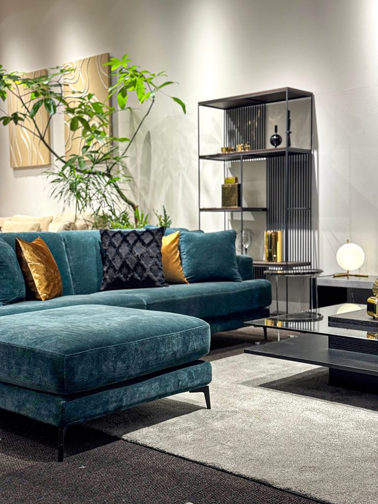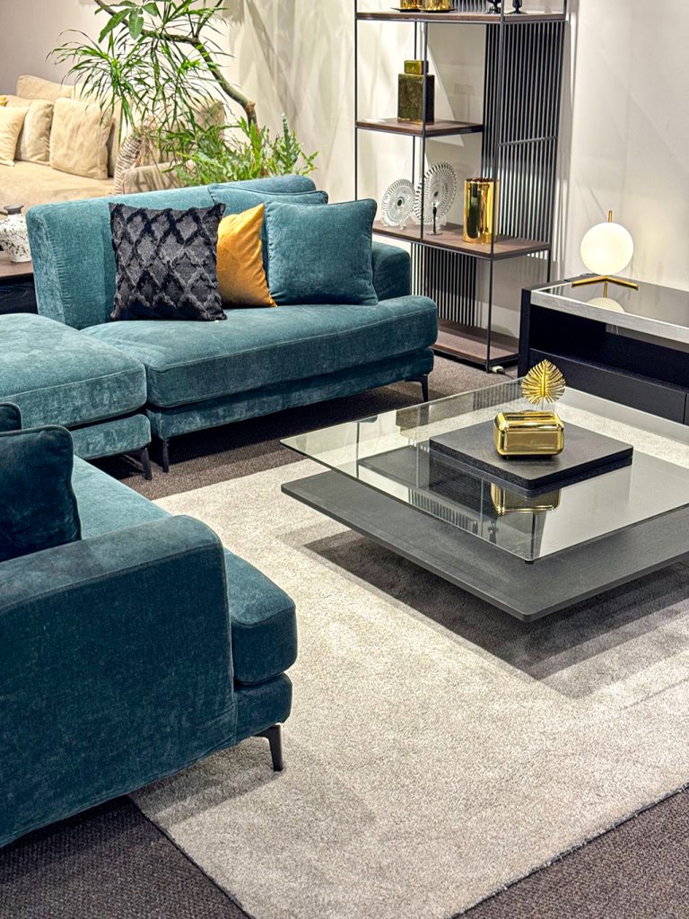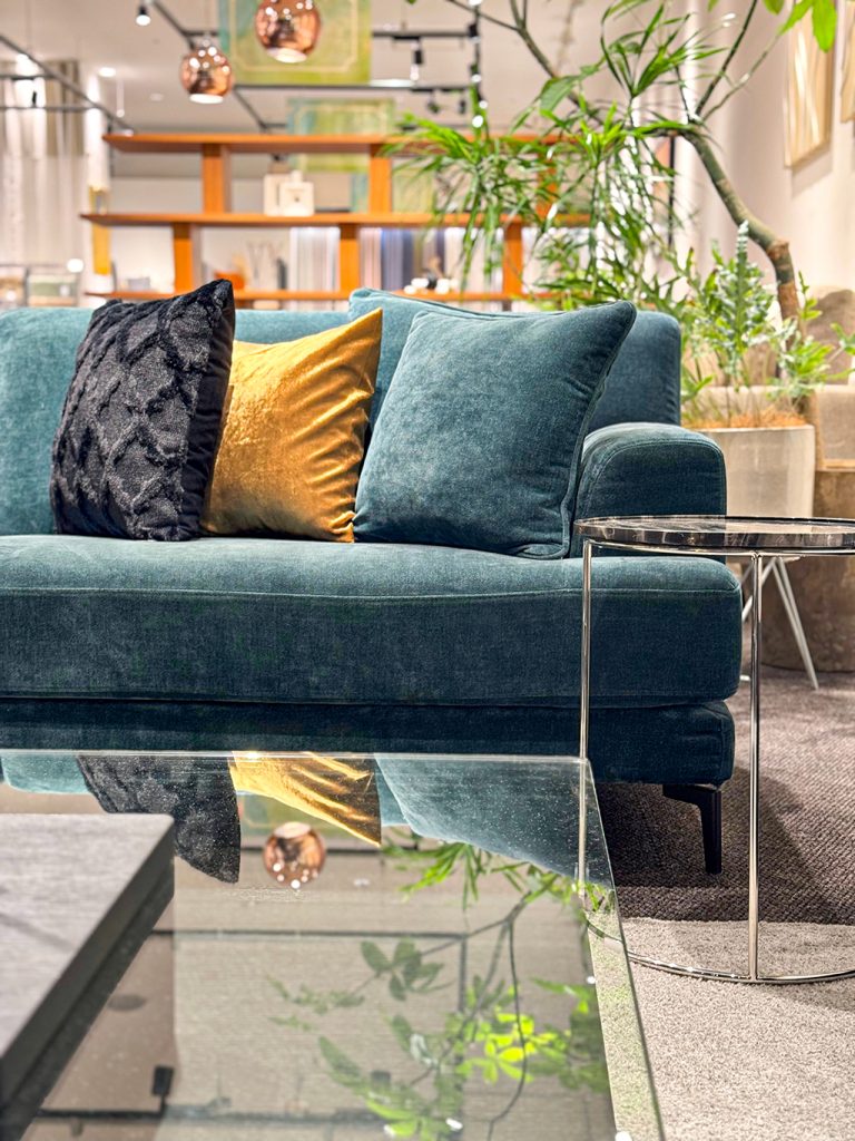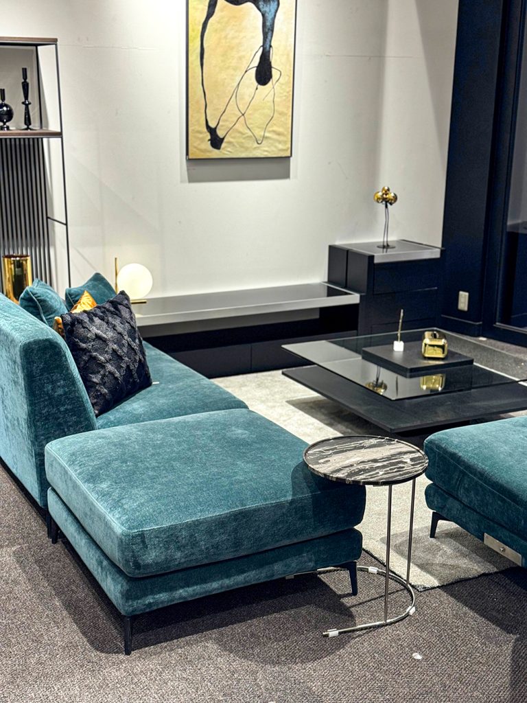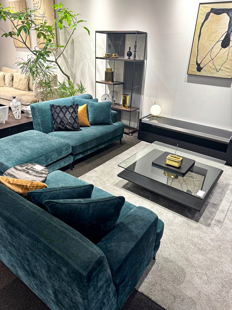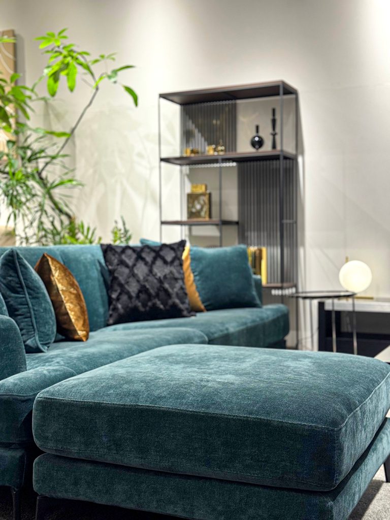 ブラックゴールドのインテリアに、宝石のエメラルドを彷彿するグリーンの「CIELO」で併せてみました。