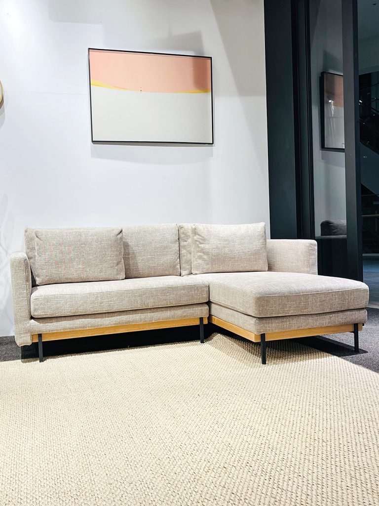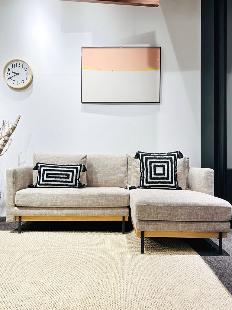 こちらのソファは、今までのARMONIAらしいアイアン脚のスタイリッシュさと、明るい木のぬくもり、そして生地感のコントラストが絶妙なバランスのソファになります。