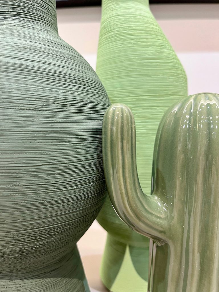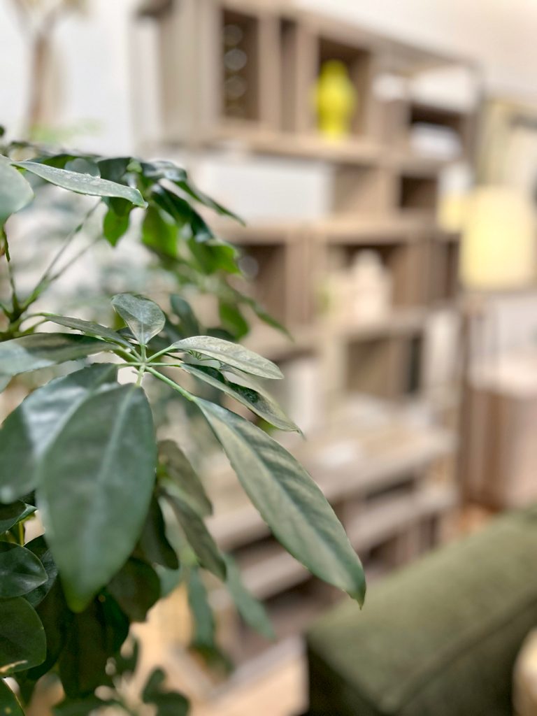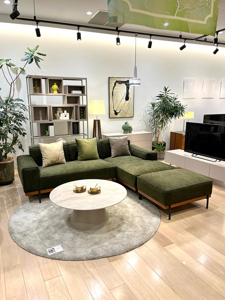 グレージュ家具とグリーンのソファを使用し、上品ながらも爽やかな夏を感じるコーディネート組んでみました。