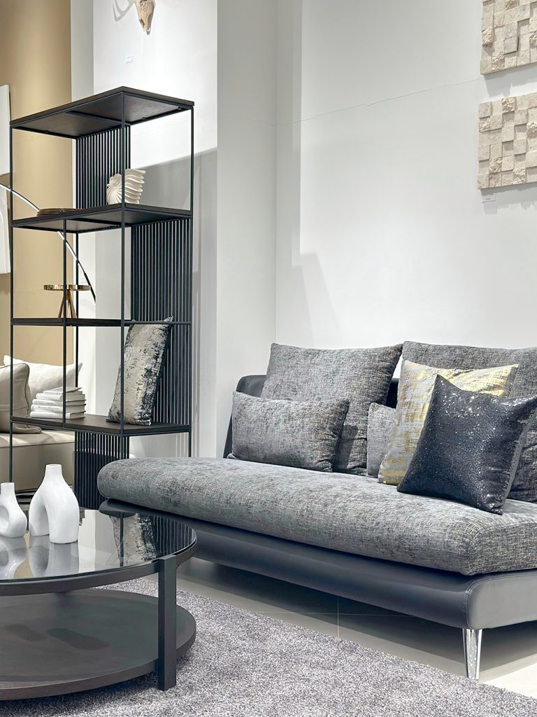 今回は、ソファ周りをモノトーンかつラグジュアリーな雰囲気でコーディネートしてみました。