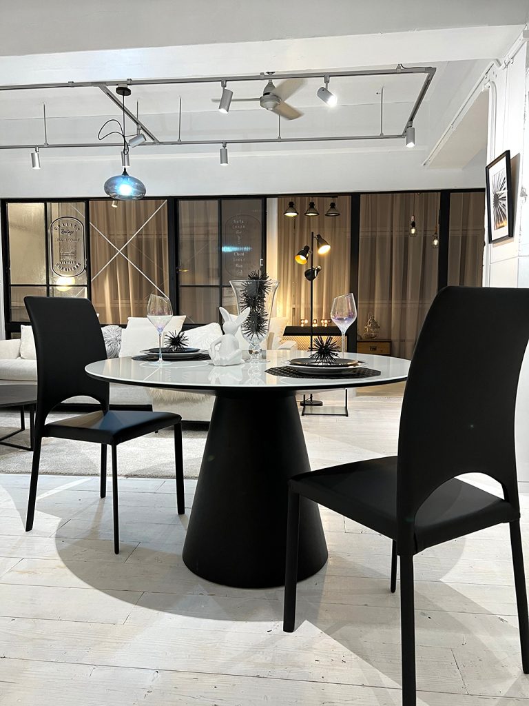 こちらのテーブルは「円錐形の天板」と「円錐形の脚部」で構成された可愛らしいフォルムながらも洗練されたデザインです。