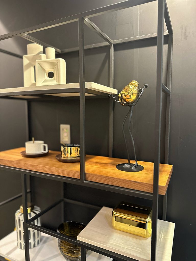 見た目のインパクトがすごいですよね笑 お写真の『Faglia-sf701-』等のオープンシェルフに何を飾ろう?十迷いの方にはぜひおすすめです。金色のボール部分は取り外し可能なので、外して別のものを持たせてみたり、指や頭の部分にネックレスや指輪をかけるなど、アレンジしていただいてもお使いいただけると思います♪