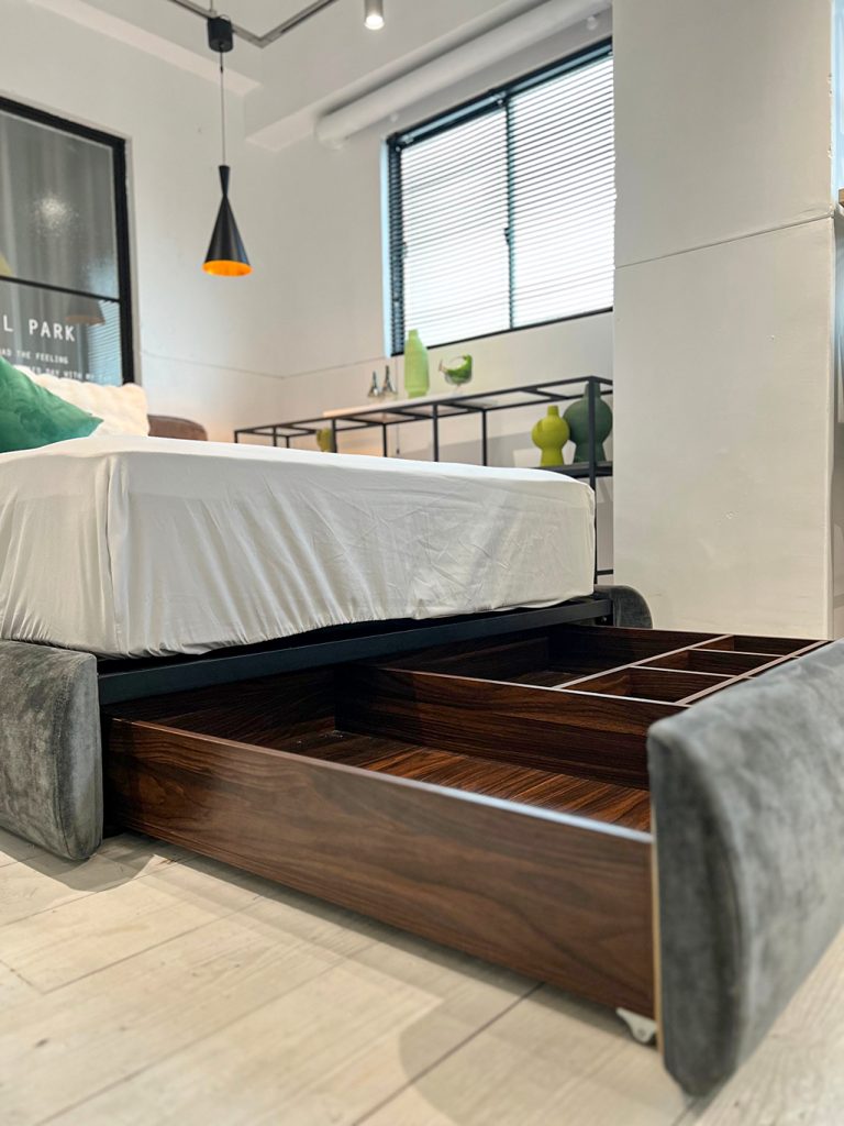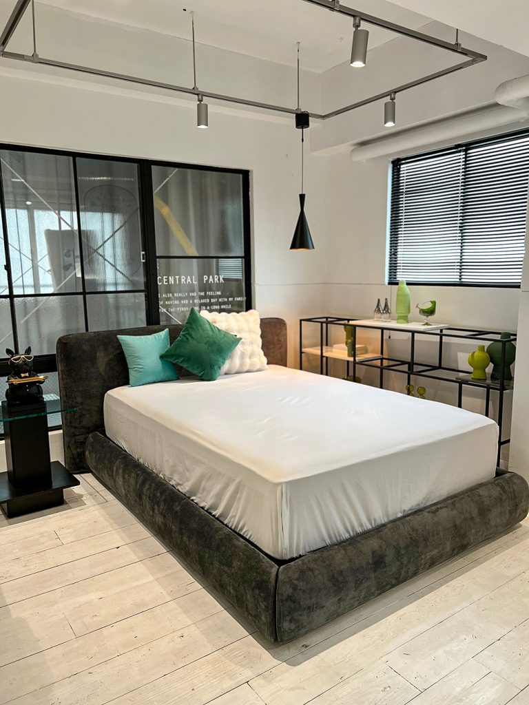 ベロアの様な質感で高級感と重厚感あふれるベッドフレーム。