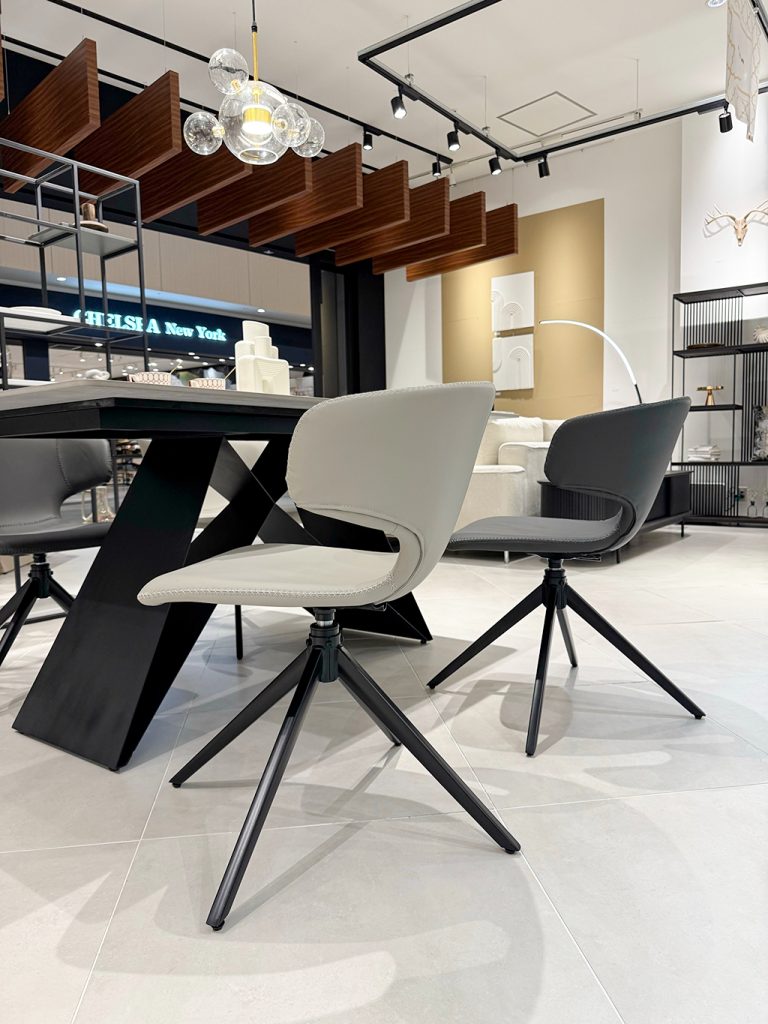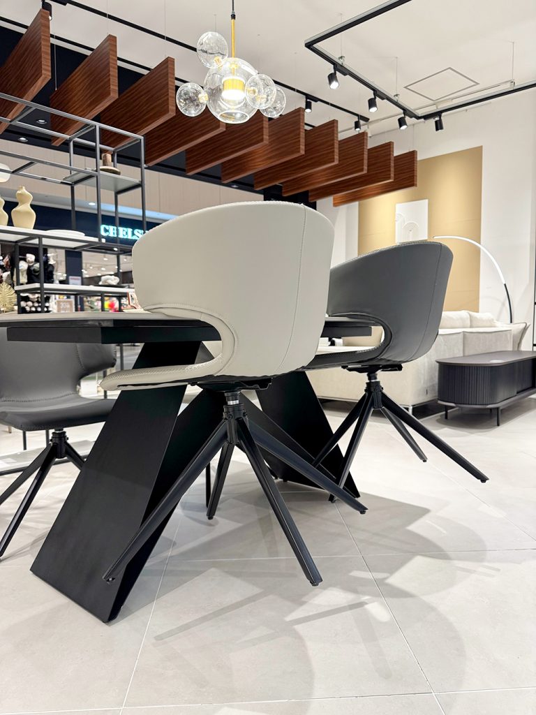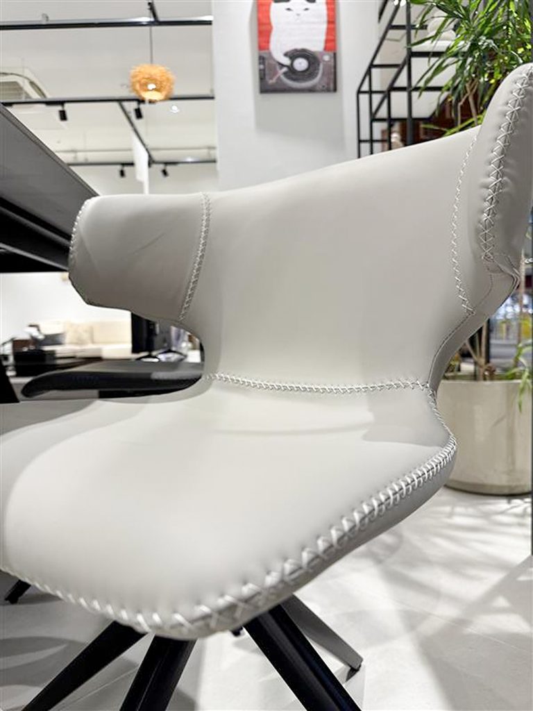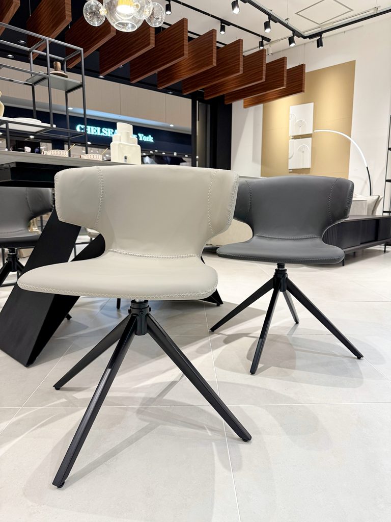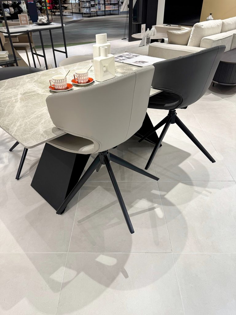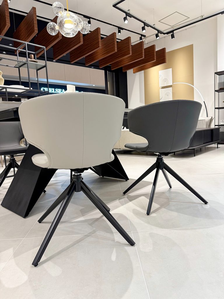 回転チェアでスペースも取らず、肌触りよしの好評ダイニングチェアです。 プラス今回推したいのが、テーブルに掛けれる点で掃除の時ストレスフリーでございます!