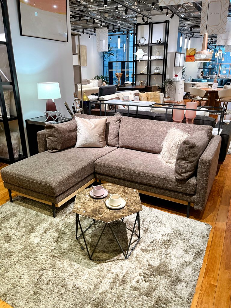 丸の内店に展示のあるモカブラウンは単色ではないため汚れが目立ちにくく、ピンク色が含まれているため、暖かく可愛い印象になるのでお勧めでございます。