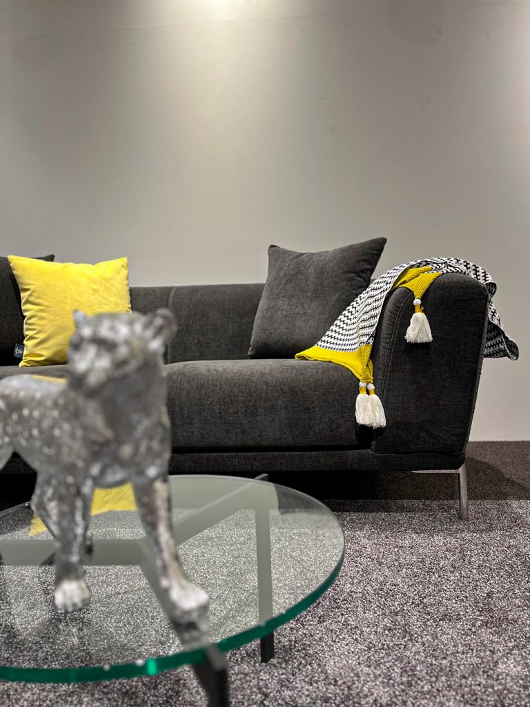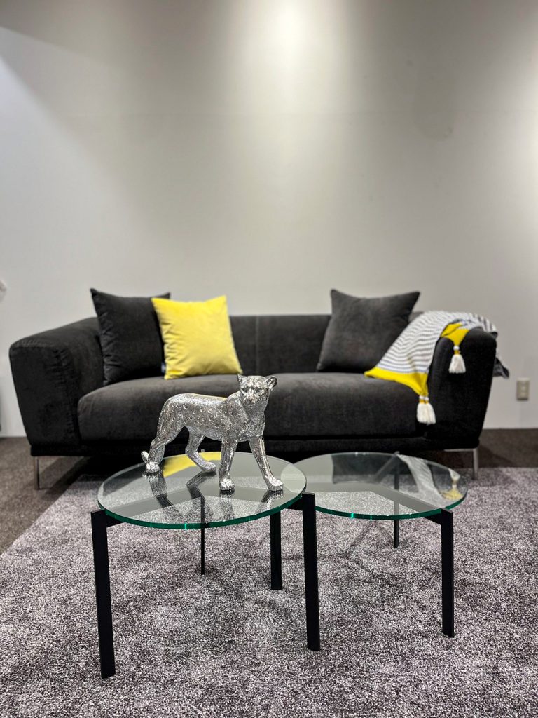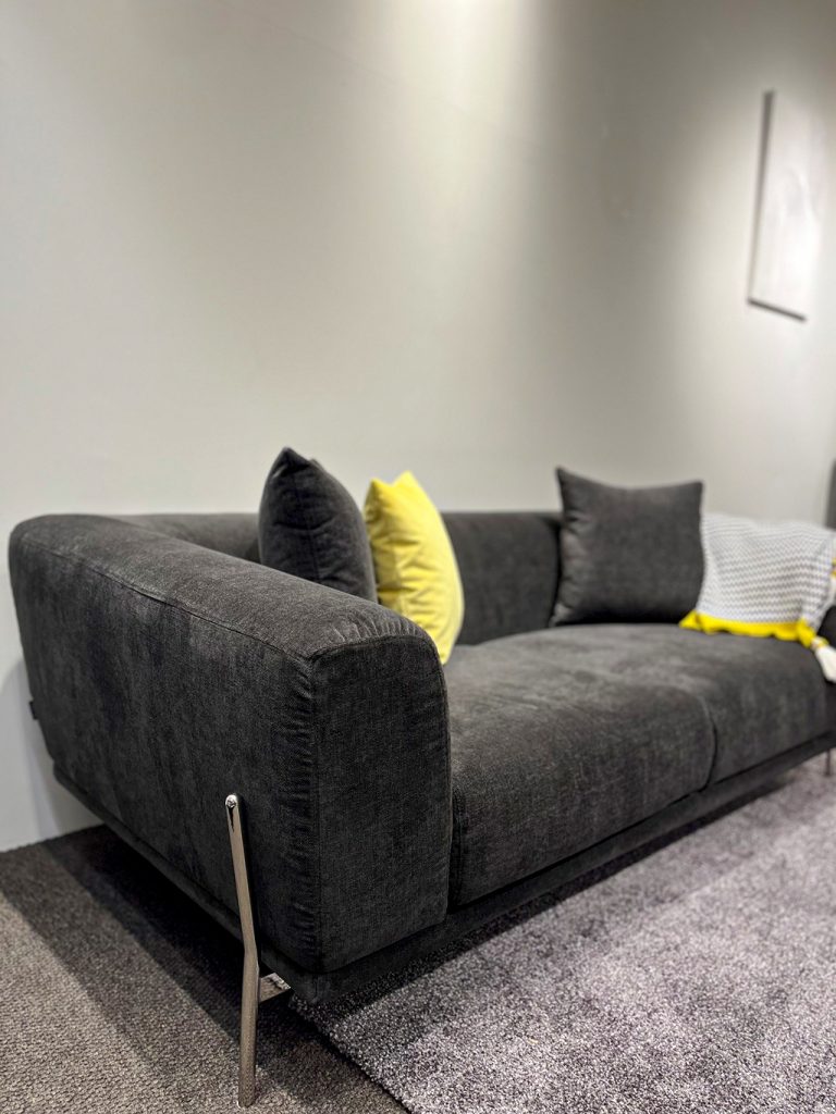 こちらはシンプルなデザインと、シルバーの脚のデザインが特徴的なソファになります。