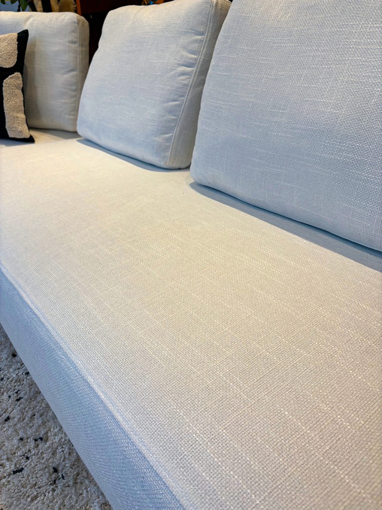 背面のクッションが可動式なので、お好みの奥行きでお楽しみいただけるソファ。 シングルベッドほどの奥行きがあるので、コンパクトながらゆったりとくつろげ、 かつ背面のフレームがないのでスッキリとした印象のソファです😊