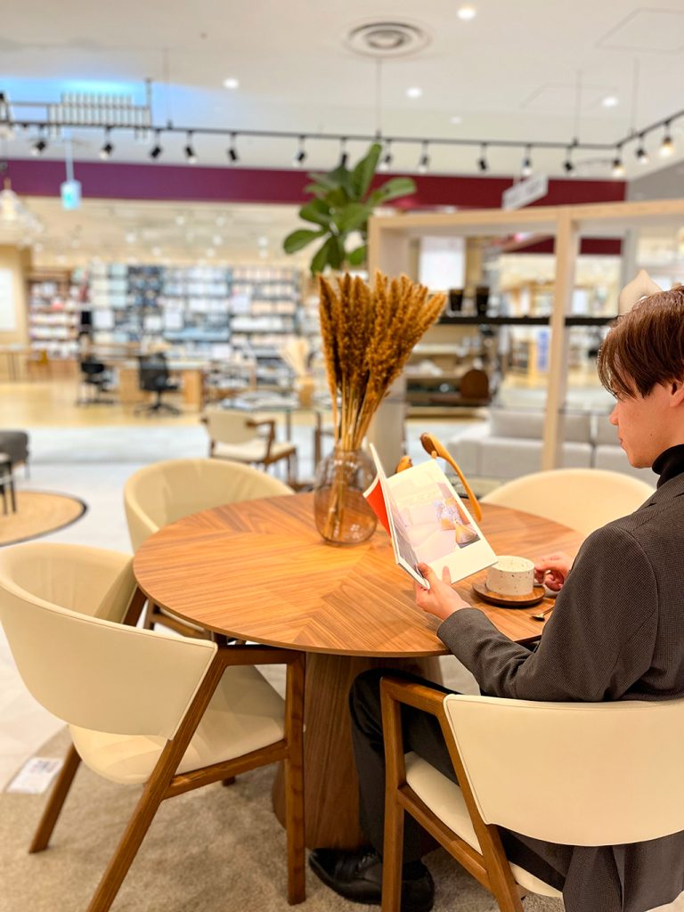 商品はダイニングテーブルはPIANE(hbc-008)とダイニングチェア(hmd02)を使用しております。