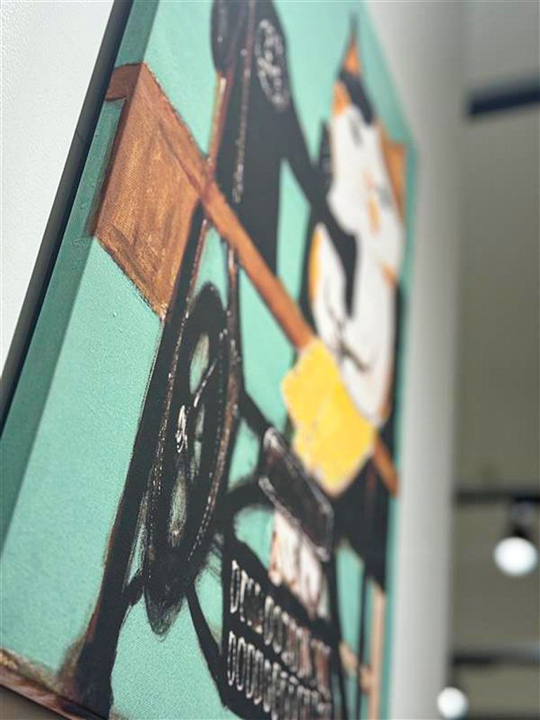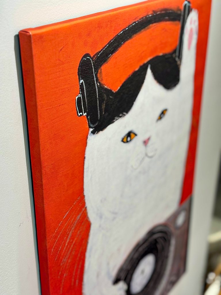 結構好評な猫アートパネル。 他にも種類がありお部屋のアイキャッチ間違いなし! 美容師風猫の絵も数種ございますので、美容室やサロンにもお勧め😶