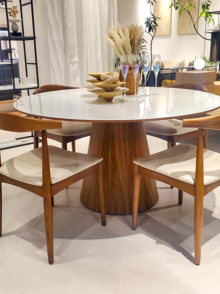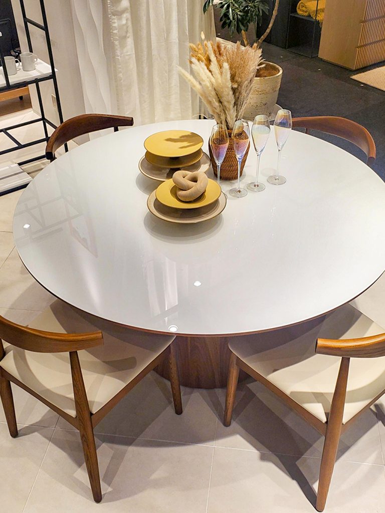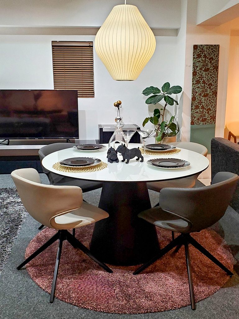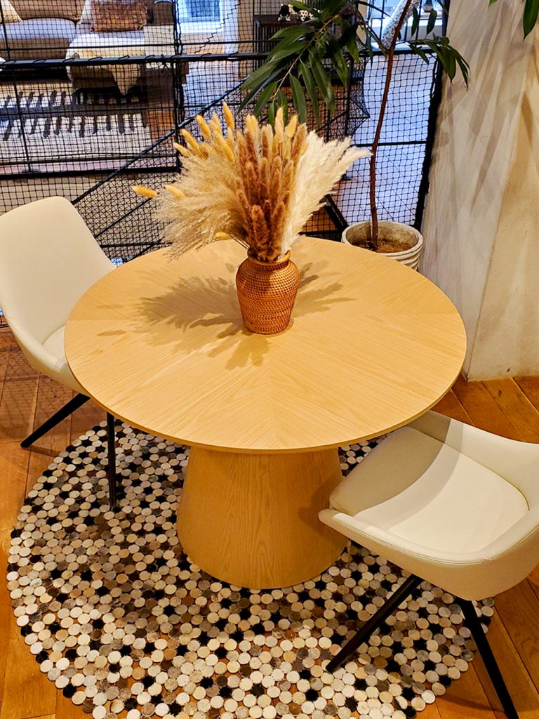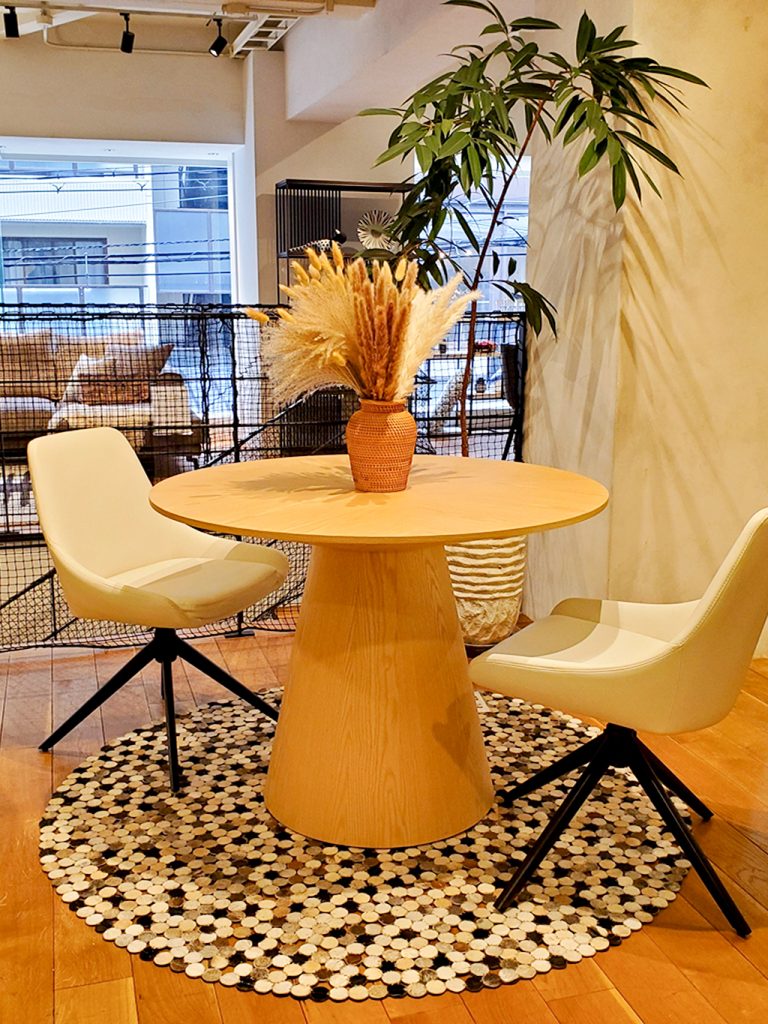 リビング空間の主役となるダイニングテーブル、ラウンドタイプを配置してみるのはいかがでしょうか?